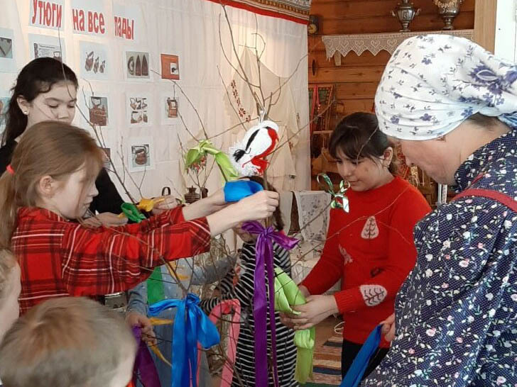 Ребята с интересом наряжали обрядовое дерево, украшали его разноцветными лентами и птичками, пели обрядовые песни.