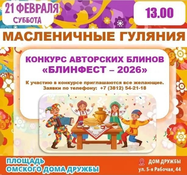 В рамках грандиозного Масленичного гуляния на площади Омского Дома Дружбы состоится главная гастрономическая битва — конкурс авторских блинов «БЛИНФЕСТ»!
