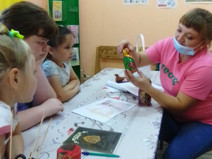 17 августа методист по фольклору филиала народной культуры МБУК МСКДЦ «СВЕТОЧ» Евгения Федоровна Счастная провела для воспитанников Школы рукоделия беседу «История создания народной игрушки».